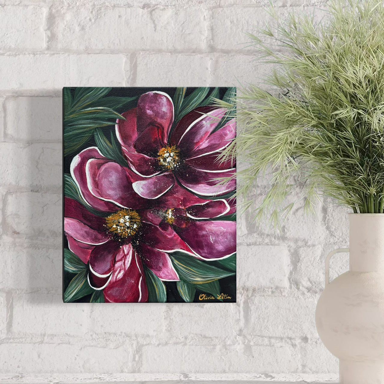 Peinture acrylique abstraite sur toile, passion florale intense. Entre profondeur envoûtante et éclats dorés, une infusion de mystère et d’élégance. Alchimie subtile entre la force et la délicatesse, entre l’ombre et la lumière. Laissez-vous hypnotiser par l’énergie vibrante de cette toile et offrez à votre intérieur une touche de raffinement intemporel. ✨