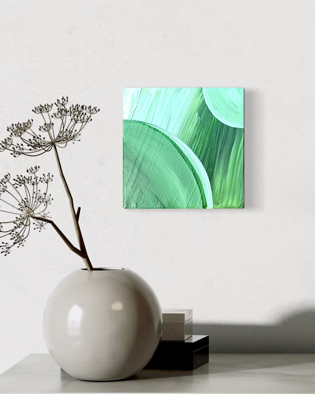 Peinture acrylique sur toile. Terre paisible évoque pour moi un retour à quelque chose de stable, de calme, presque primaire. Formes sont douces, arrondies, comme si rien ne cherchait à forcer. Sensation de solidité tranquille, d’équilibre naturel...